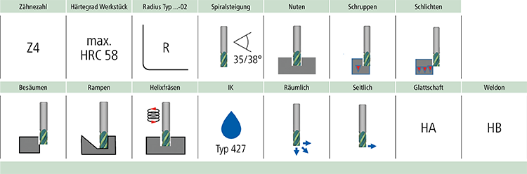 HPC-Schaftfräser mit Innenkühlung, mit Radius