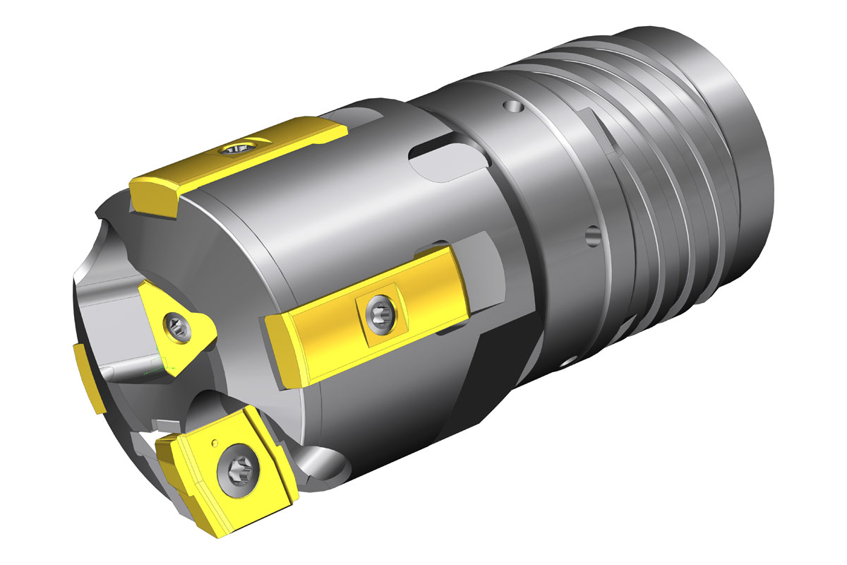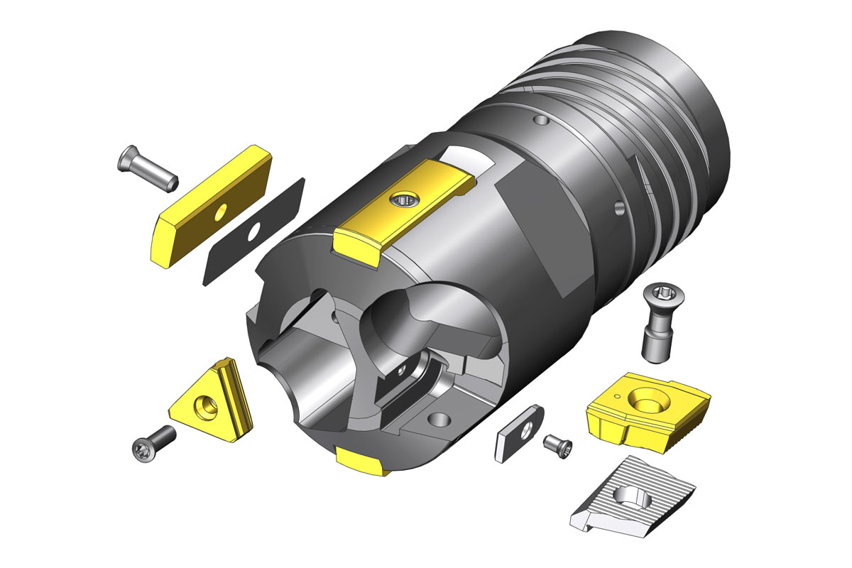with indexable inserts and guide pads, setting of drill diameter by stop plate